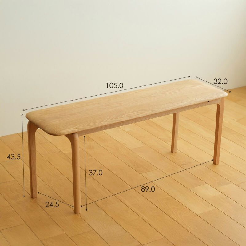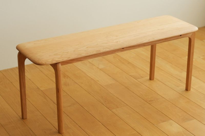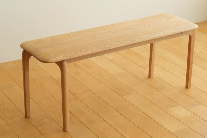 無垢材を使った2人掛け用の長椅子です。熟練の職人によるなだらかな曲線が木目の美しさを際立たせます。大人2人がゆったりと腰かけられるサイズ感で、LISCIOの長方形ダイニングテーブルと合わせてもお使いいただけます。脚部は非対称に接合しており、無駄のない美しさと絶妙なR(曲線)が特徴です。強度があり座面をしっかりと支えてくれるため、安定感のある座り心地となっています。
