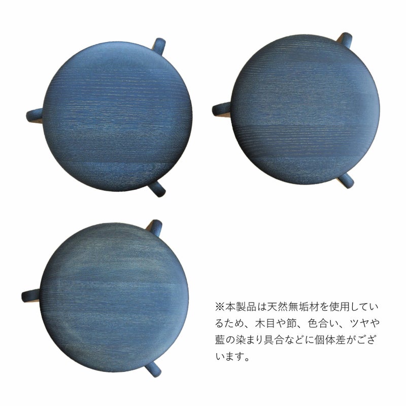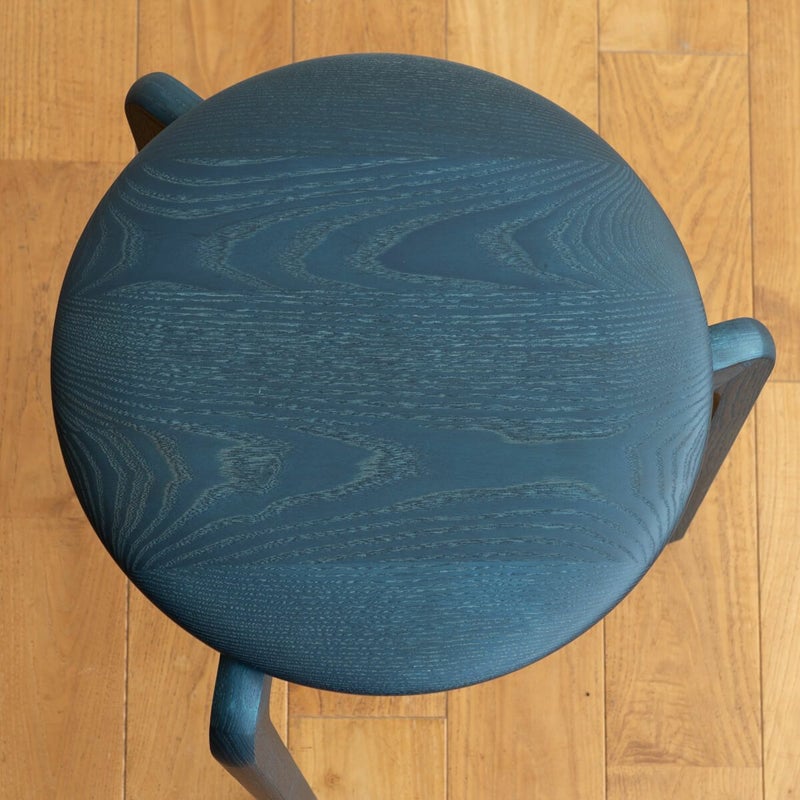 藍染のみ特別に、白い表面と木目がくっきりと浮かび上がる「ホワイトアッシュ」を使っています。藍の風合いや木目の浮かび方も、一脚一脚異なり、木が見せる表情がグッと変わります。