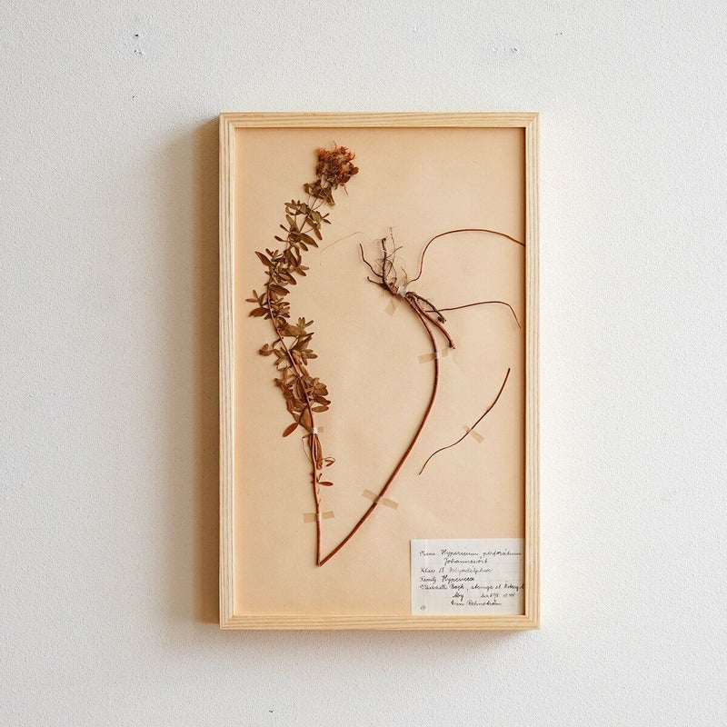 vokkoさんがスウェーデンで買い付けたこの標本は、1944-46年の間にスウェーデン国内で製作された植物標本。長年ファイルに挟んだ状態で保存されており保存状態がよく、まだほんのり緑やお花の色が残っています。ラベルには、名前、科目、生息地、採取日などが記載されいています。標本の詳しい背景は分からないのですが、植物の分類学を始めたのがスウェーデン人のカール・フォン・リンネ博士ということもあり、植物学が盛んな国の標本の1つです。