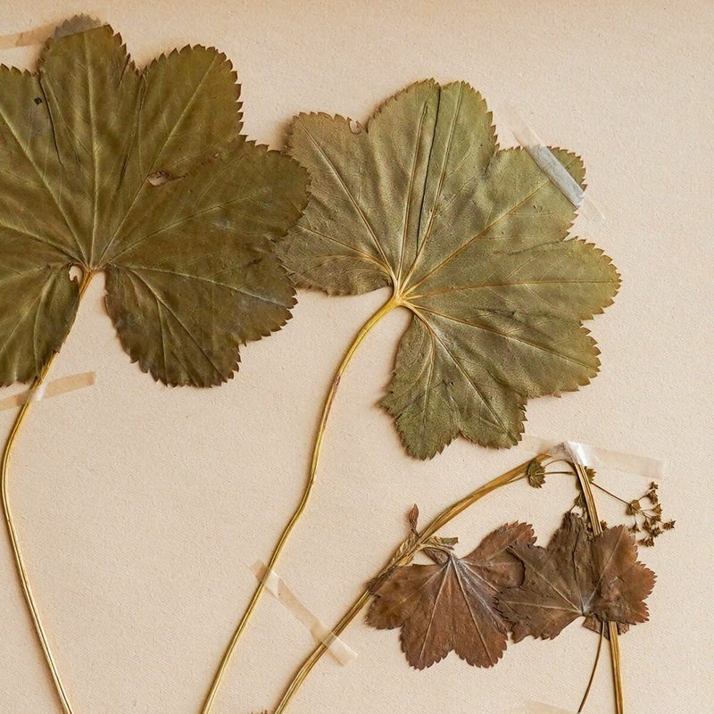vokkoさんがスウェーデンで買い付けたこの標本は、1944-46年の間にスウェーデン国内で製作された植物標本。長年ファイルに挟んだ状態で保存されており保存状態がよく、まだほんのり緑やお花の色が残っています。ラベルには、名前、科目、生息地、採取日などが記載されいています。標本の詳しい背景は分からないのですが、植物の分類学を始めたのがスウェーデン人のカール・フォン・リンネ博士ということもあり、植物学が盛んな国の標本の1つです。