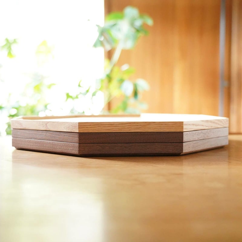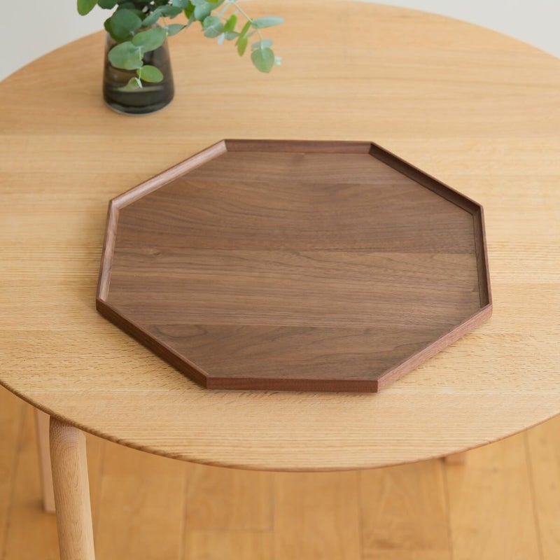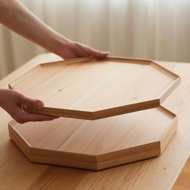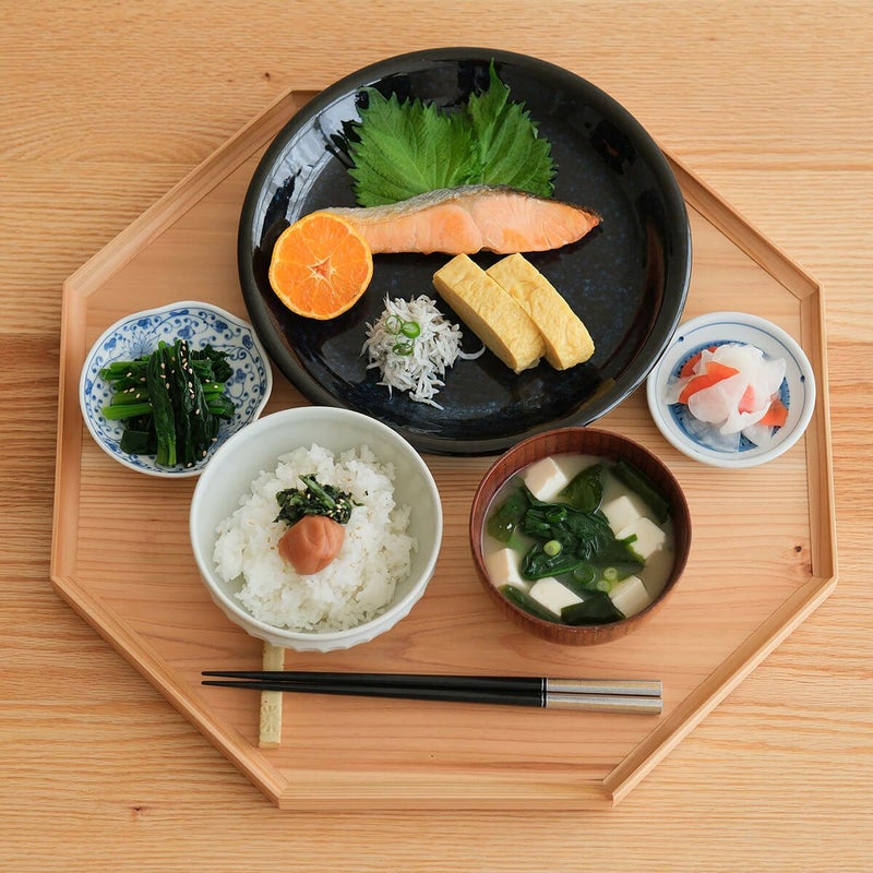 お料理があんまり得意でなくても、こんな折敷を使うとキチンと感がアップしますね。どんなうつわでも受け止めてくれる、懐の広い八角形のトレイです。