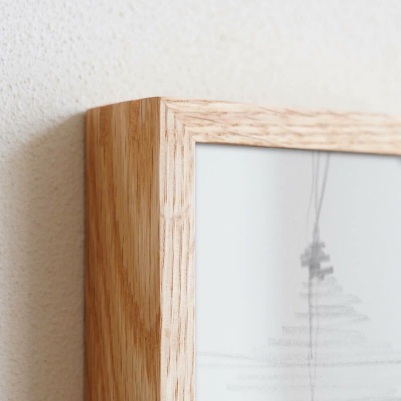 上質でずっと使えるスタンダードな額縁シリーズ。「写真や絵をより美しく」という額縁本来の役割を果たしながら、無垢材特有のひとつひとつ異なる木目が存在感を際立たせ、奥行きのある空間を演出します。リビングや玄関、寝室などの多くのシーンでお使いいただけます。