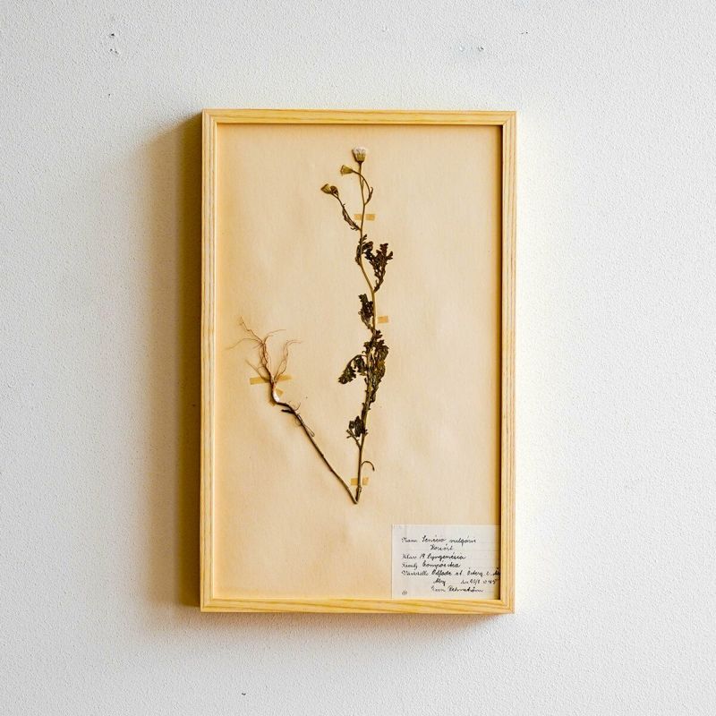 vokkoさんがスウェーデンで買い付けたこの標本は、1944-46年の間にスウェーデン国内で製作された植物標本。長年ファイルに挟んだ状態で保存されており保存状態がよく、まだほんのり緑やお花の色が残っています。ラベルには、名前、科目、生息地、採取日などが記載されいています。標本の詳しい背景は分からないのですが、植物の分類学を始めたのがスウェーデン人のカール・フォン・リンネ博士ということもあり、植物学が盛んな国の標本の1つです。