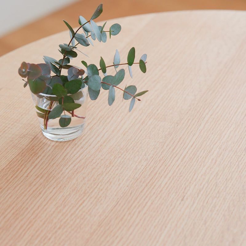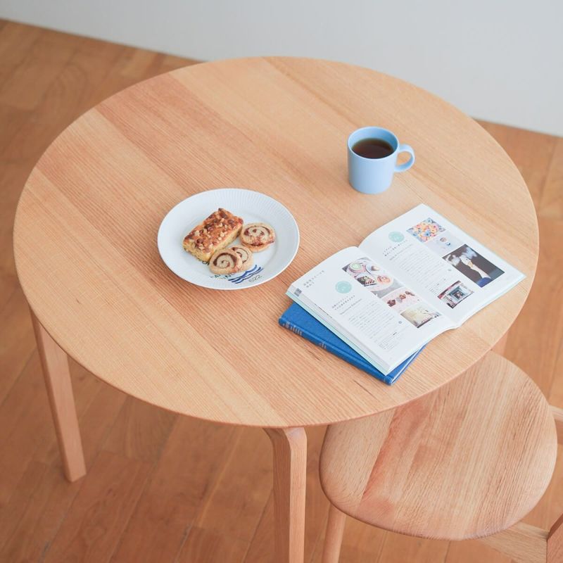 無垢材を使った円形のダイニングテーブルです。熟練の職人によるなだらかな曲線が木目の美しさを際立たせます。コンパクトながら、大人2人でゆったりと使えるサイズ感。ダイニングテーブルとしてだけでなく、リモートワークなどのデスクとしてもおすすめです。