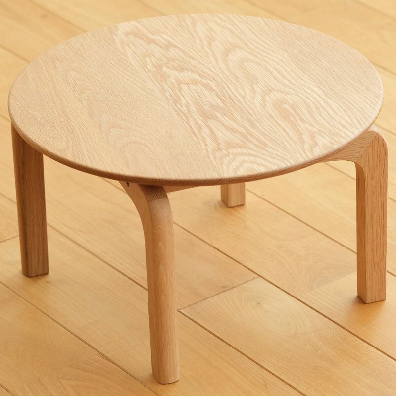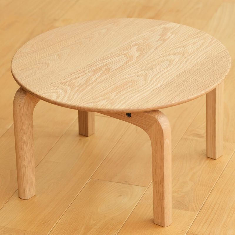 無垢材を使った円形の小さなローテーブルです。熟練の職人によるなだらかな曲線が木目の美しさを際立たせます。食事中やティータイム、読書の時間などに、ちょっとしたものを置くサイドテーブルとしてお使いいただけます。84cmのローテーブルと合わせたときのバランスも絶妙。シンプルなデザインなので、和室にも気持ちよく馴染みます。