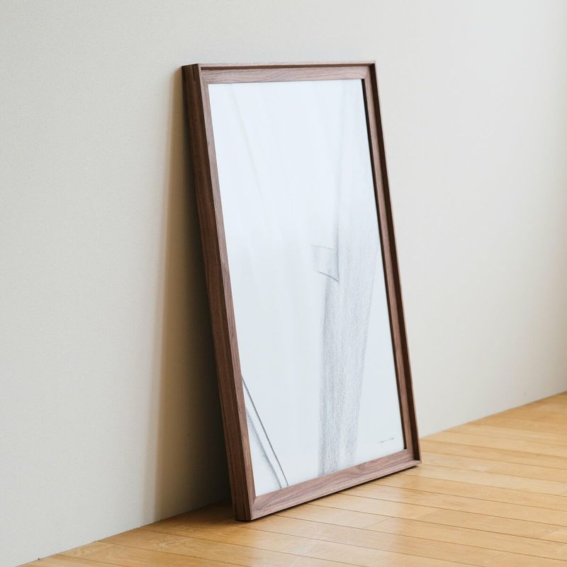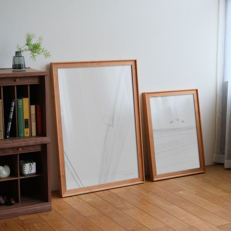 無垢材ならではのナチュラルな風合いと、ていねいな研磨作業が生み出すマットな質感が魅力。額縁らしい重厚感のあるフォルムが、作品を引き立たせてくれます。