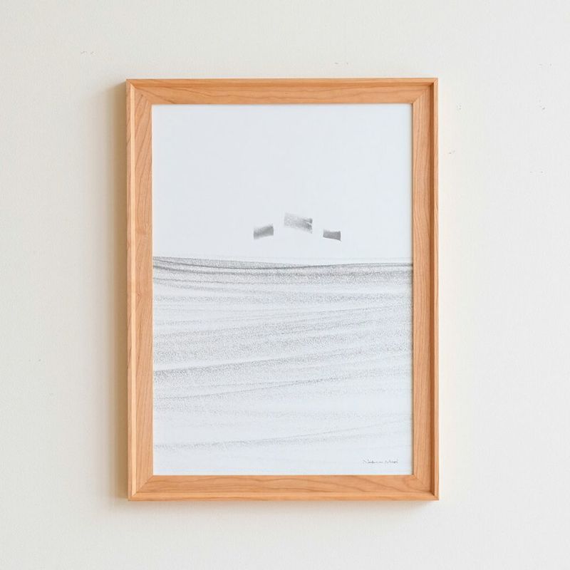無垢材ならではのナチュラルな風合いと、ていねいな研磨作業が生み出すマットな質感が魅力。額縁らしい重厚感のあるフォルムが、作品を引き立たせてくれます。