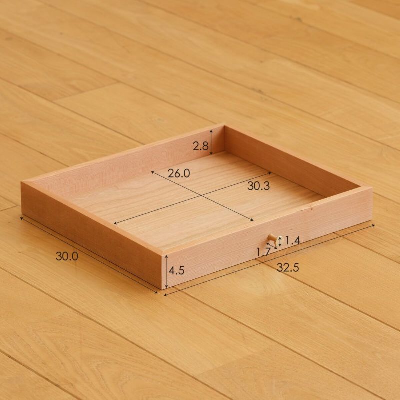 COCCO Unit専用のドロワー(引き出し)です。文具、小物、ステーショナリー、カトラリーなど、用途に合わせてお使いください。ツマミはウォールナット材はカッパー(銅)、オーク、チェリー材は真鍮と、樹種の色味に合わせてあるので見た目の統一感がうれしいポイントです。 ※対応するUnitはA、B、Cです。