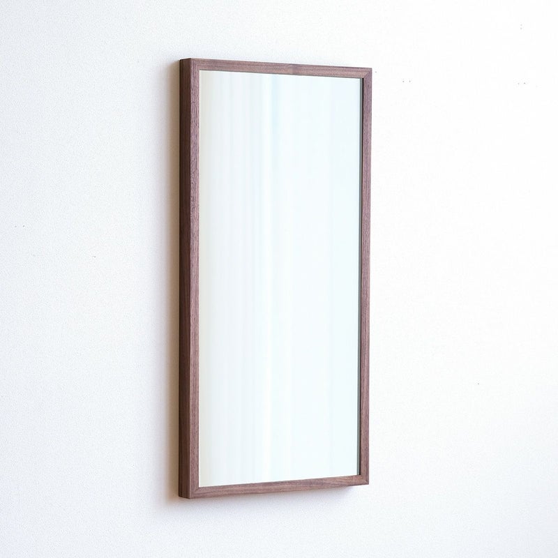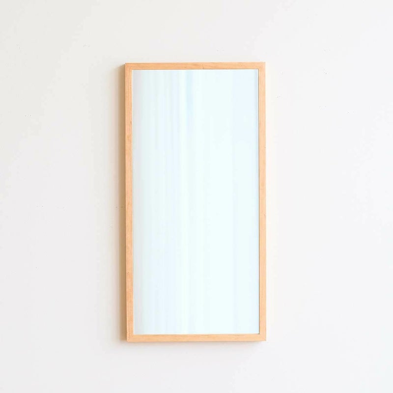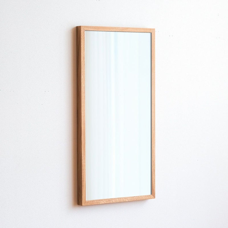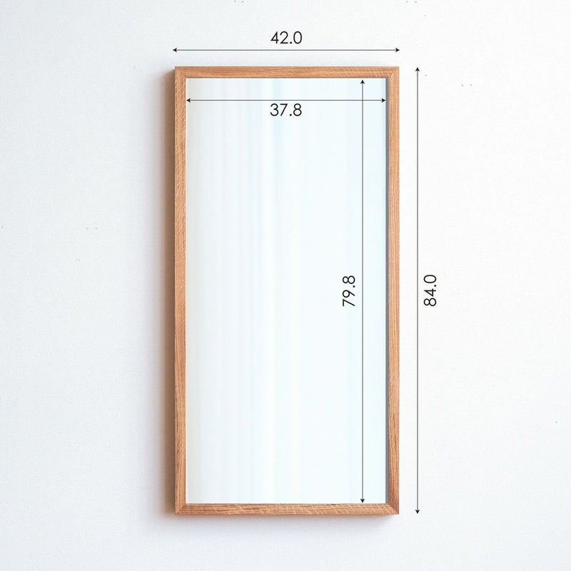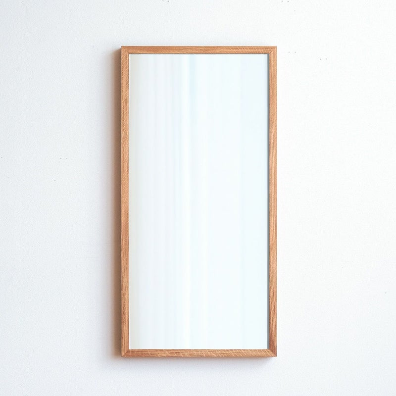 老舗額縁メーカーが作る、シンプルで洗練されたデザインのミラーです。無垢材ならではのナチュラルな風合いと、ていねいな研磨作業が生み出すマットな質感が魅力。さらりと壁に飾るだけで、お部屋の雰囲気を格上げしてくれます。ゆがみの少ない鏡を採用しており、クリアな映りが特徴です。