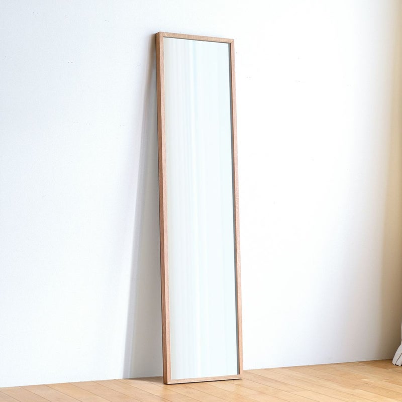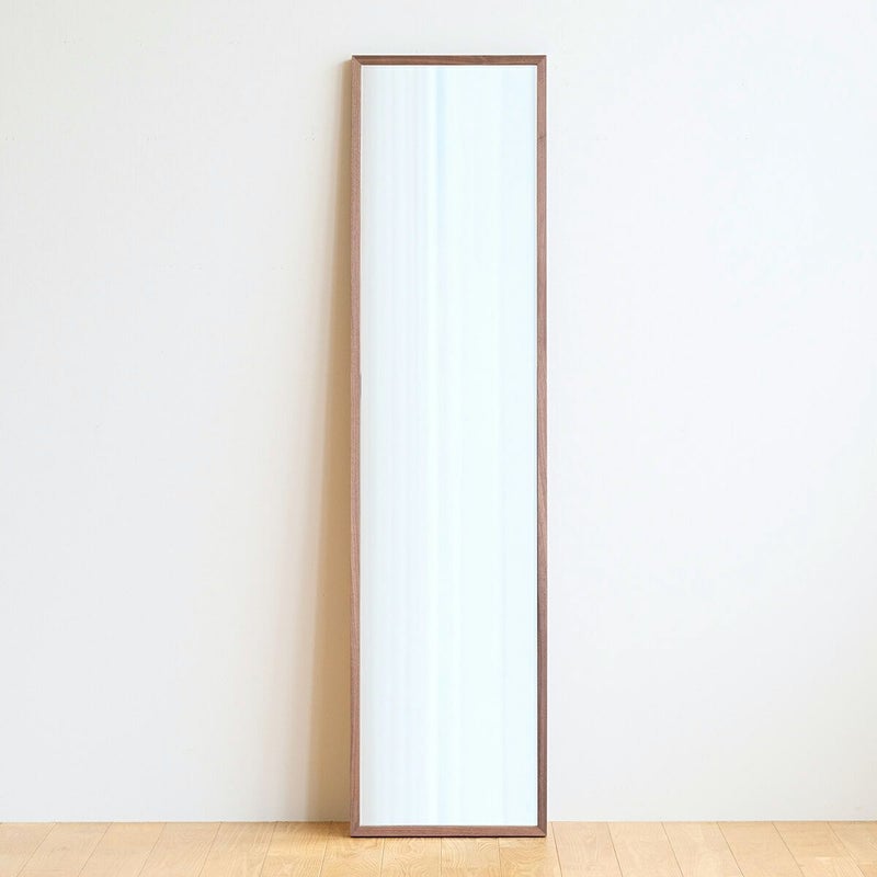 老舗額縁メーカーが作る、シンプルで洗練されたデザインのミラーです。無垢材ならではのナチュラルな風合いと、ていねいな研磨作業が生み出すマットな質感が魅力。さらりと壁に飾るだけで、お部屋の雰囲気を格上げしてくれます。ゆがみの少ない鏡を採用しており、クリアな映りが特徴です。