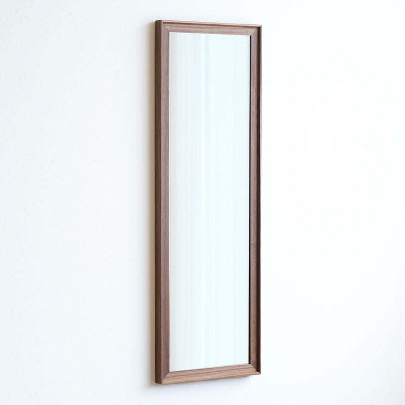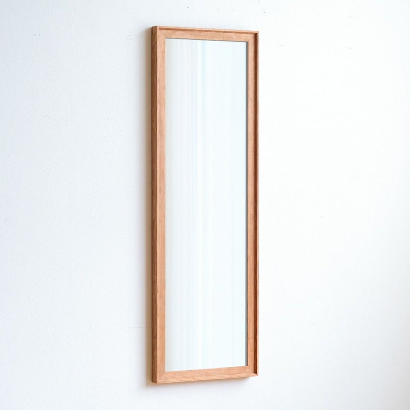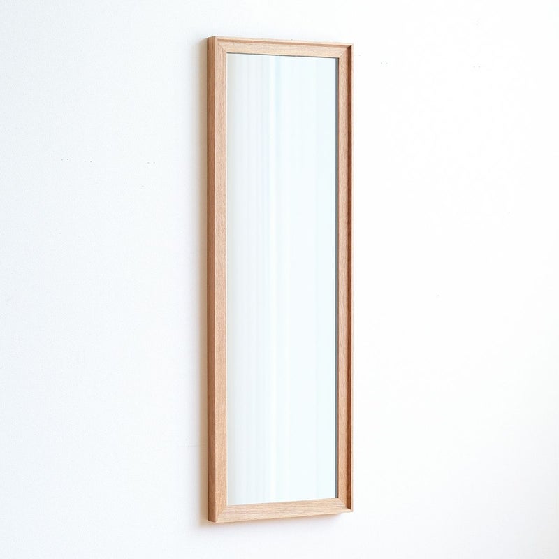 老舗額縁メーカーが作る、シンプルで洗練されたデザインのミラーです。無垢材ならではのナチュラルな風合いと、ていねいな研磨作業が生み出すマットな質感が魅力。さらりと壁に飾るだけで、お部屋の雰囲気を格上げしてくれます。ゆがみの少ない鏡を採用しており、クリアな映りが特徴です。