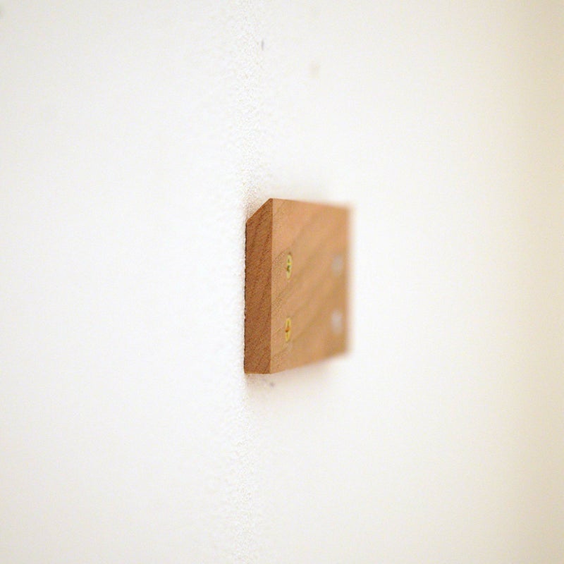日本建築などで使われる組み木の技法であるドッコ式を採用しており、飾った際に安定感があるのに加えて壁と製品の間に無駄な隙間ができません。ドッコ式は、木材の端に切り込みを入れて別の木材と組み合わせ、釘や接着剤を使わずに固定しています。