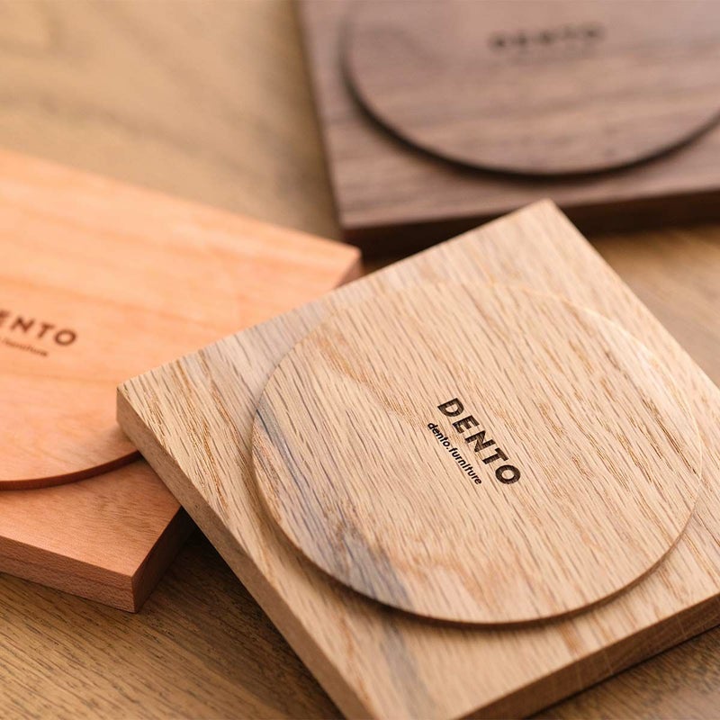 樹種はウォールナット、オーク、チェリーの3種類から選んでいただけます。どの樹種同士でも重ねられるので種類バラバラにセットでそろえていただくのもおすすめです。