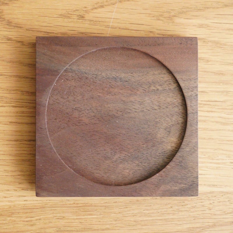 コップを置いた際にコースターからずれて転倒しないように、丸いくぼみを施しています。その部分はスタッキングする際のくぼみとしても活躍しています。