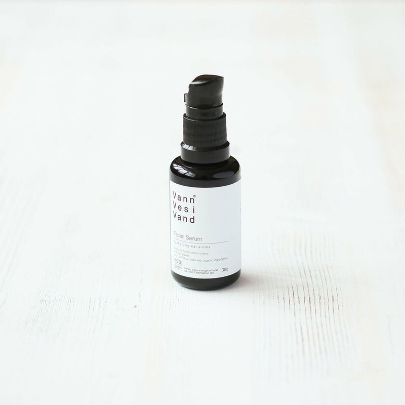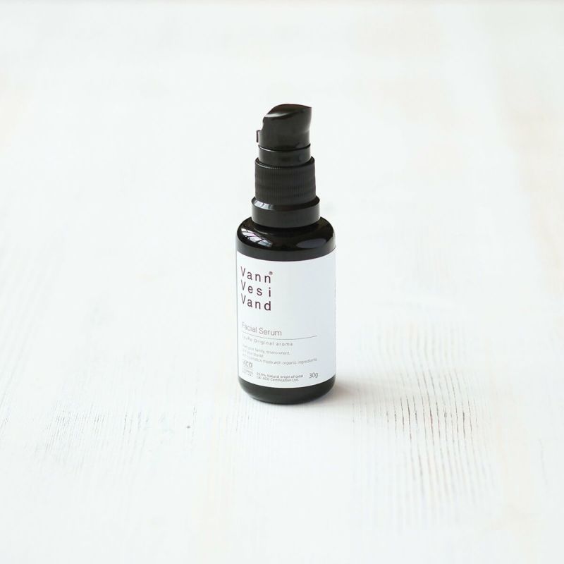 日用品などのプロダクトデザインを手がけるSyuRoが開発したスキンケアシリーズ「Vann Vesi Vand(ヴァン ヴェッシ ヴァンド)」。フェイシャルセラムは、ベトつかず軽やかな使い心地の美容液です。肌を柔らかくして、シワを伸ばす効果が期待できるクランベアビシニカ種子油を配合しています。添加物、保存料は一切使用していません。