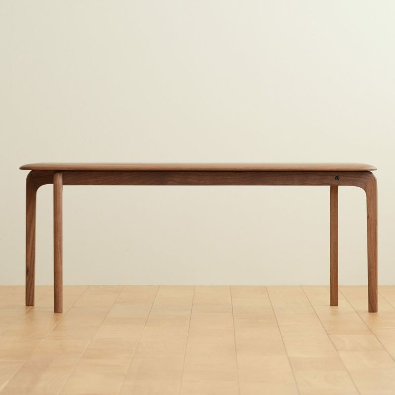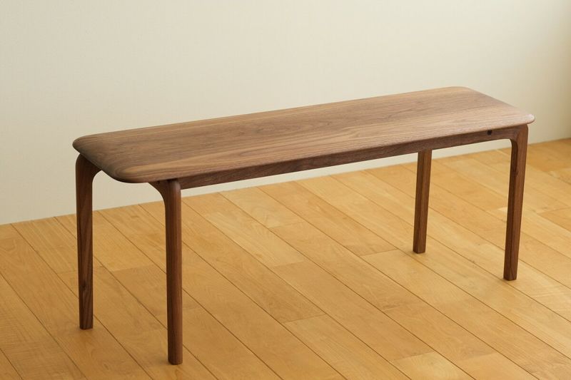 無垢材を使った2人掛け用の長椅子です。熟練の職人によるなだらかな曲線が木目の美しさを際立たせます。大人2人がゆったりと腰かけられるサイズ感で、LISCIOの長方形ダイニングテーブルと合わせてもお使いいただけます。脚部は非対称に接合しており、無駄のない美しさと絶妙なR(曲線)が特徴です。強度があり座面をしっかりと支えてくれるため、安定感のある座り心地となっています。