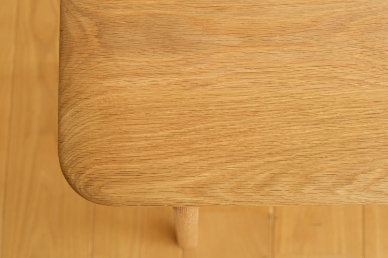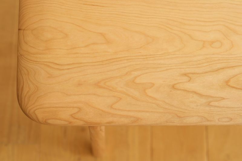 職人の手で何度も繰り返し研磨した後、天然オイルで表面加工を施しています。座面はもちろん裏面、脚部に至るまで、いつまでも触れていたくなるなめらかな質感に仕上げました。座っているとき、さらに持ち運ぶときでさえ、やさしい手触りが心を和ませてくれます。またメンテナンスをしながら長く愛用するほど、経年変化による味わい深さが増していきます。