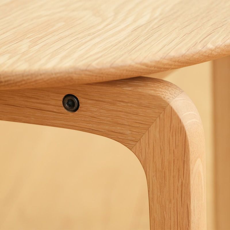 脚部は、額縁の留めという技術を使っており、それを左右非対称に組んでいるのが特徴です。無駄のない美しさと絶妙なR(曲線)が特徴です。
