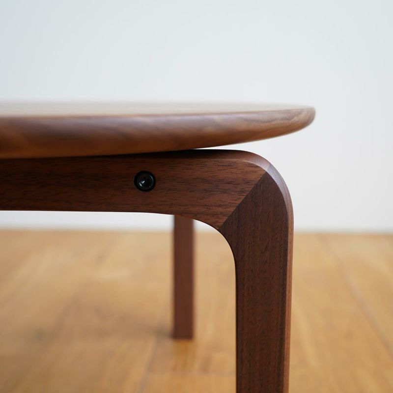 無垢材を使った円形の小さなローテーブルです。熟練の職人によるなだらかな曲線が木目の美しさを際立たせます。食事中やティータイム、読書の時間などに、ちょっとしたものを置くサイドテーブルとしてお使いいただけます。84cmのローテーブルと合わせたときのバランスも絶妙。シンプルなデザインなので、和室にも気持ちよく馴染みます。