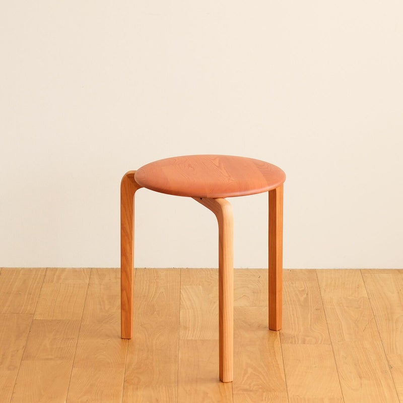 軽量で取り扱いやすいこのスツールは、複数をスタッキングして収納できる機能性も持ち合わせています。使用しない時にはコンパクトにまとめておけるため、限られたスペースでも場所を取らずに収納できます。同シリーズの別カラー(藍染・柿渋鉄媒染)を合わせて、スタッキングするのもおすすめです。
