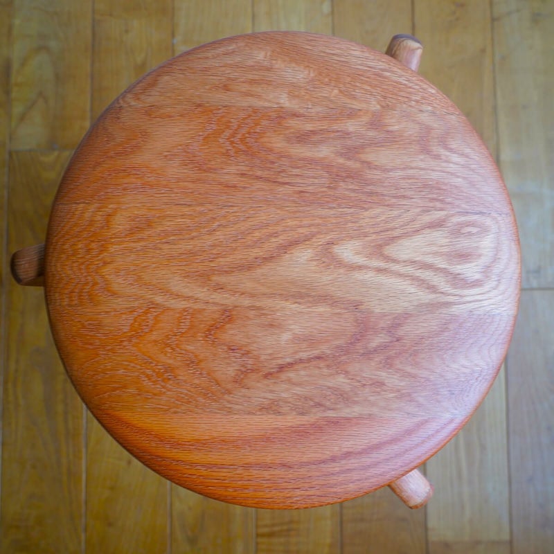 木材は柿渋に適して、木目がきれいに浮かび上がるオーク材を使っています。風合いや木目の浮かび方も、一脚一脚異なり、木が見せる表情がグッと変わります。