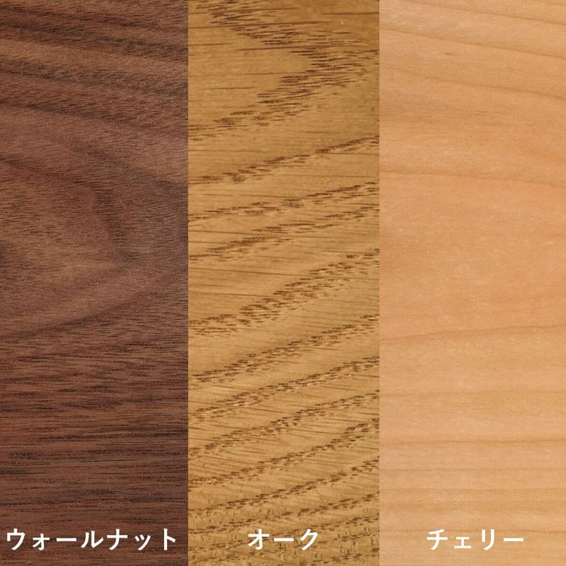 木製の脚部分は、カバー生地やお部屋の雰囲気に合わせて、ウォールナット、チェリー、オーク材の3種類からお選びください。ウォールナット材は落ち着いた色調と美しい木肌で、高級感があり、チェリー材は緻密でなめらかな木肌を持ち、経年変化で深く豊かな色合いが楽しめ、オーク材は、明るい色味に、はっきりとした木目の美しさが映える木材です。
