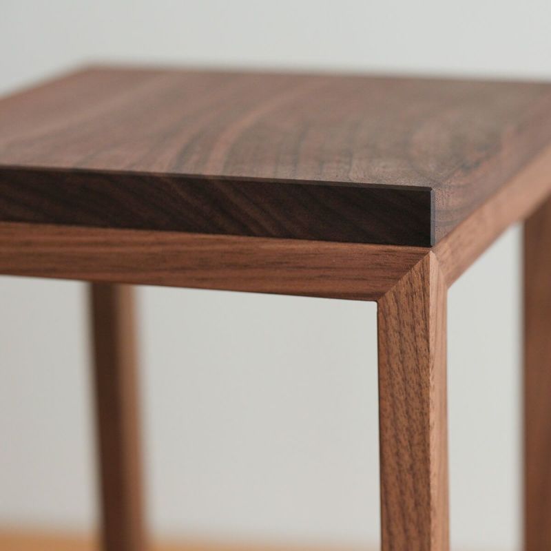 昔から日本の家具に用いられてきた「三方留」という手法で制作した花台です。三方留はビスなどを使わずに3つの部材を接合し、シャープな外観と耐久性を両立させる技術。そのためインテリアとしても美しく、重みのある鉢植えや花瓶をのせるための安定感にも優れています。