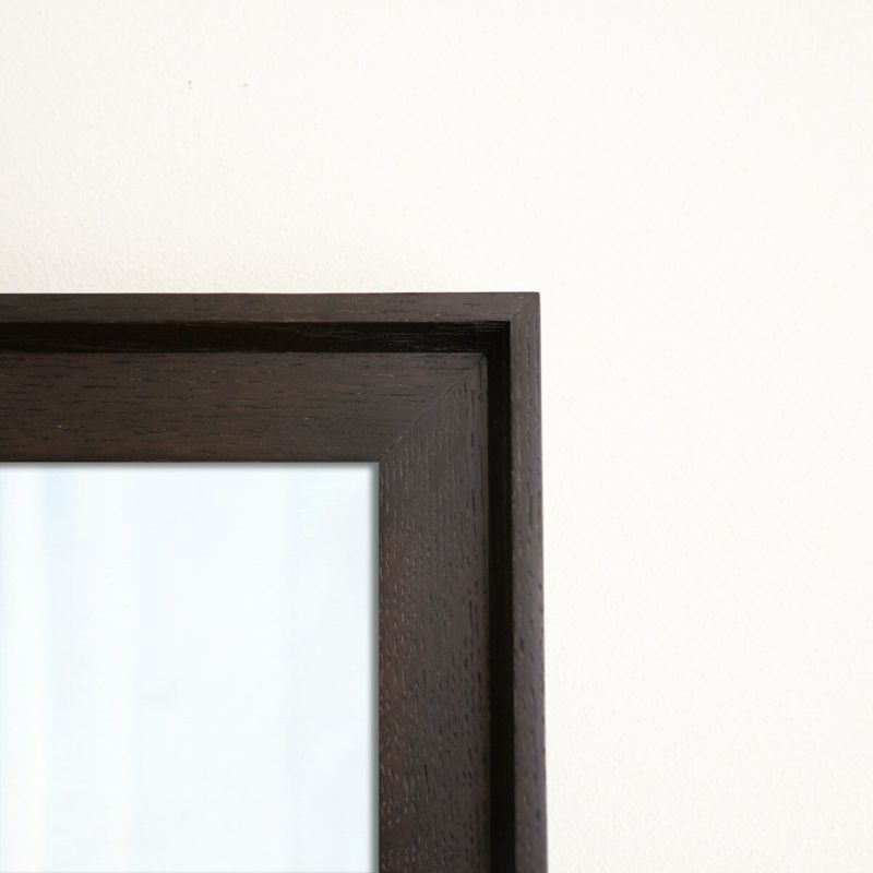 老舗額縁メーカーが作る、シンプルで洗練されたデザインのミラーです。無垢材ならではのナチュラルな風合いと、ていねいな研磨作業が生み出すマットな質感が魅力。さらりと壁に飾るだけで、お部屋の雰囲気を格上げしてくれます。ゆがみの少ない鏡を採用しており、クリアな映りが特徴です。