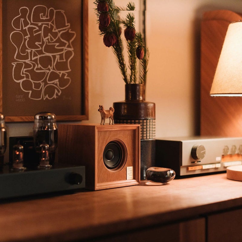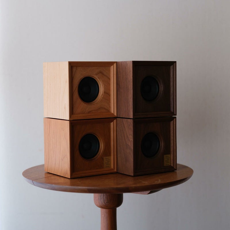 ステレオ機器が私が「もしもこんなヴィンテージスピーカーがあったら、きっと欲しくて仕方ないだろうな」と思って作ってしまった、クラシカルなデザインの小さなスピーカーです。