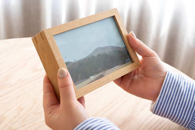 主に額縁づくりを得意とする弊社ならではの企画!お客さまのスマホの中にあるお気に入りの1枚をプリントし、職人仕上げの木製フレームに額装してお持ち帰りいただけます。木の種類も選んでいただけますよ!