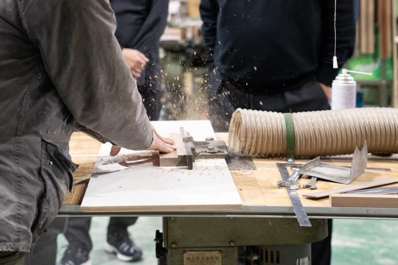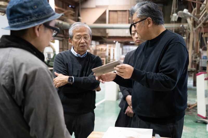 今回の訪問は、知人の写真家の方を通じて弊社代表フクマキが「浅間国際フォトフェスティバル」で進藤様とお話しする機会があったことがきっかけでした。そのご縁から、弊社の額縁づくりや、家具事業への取り組みに関心をお寄せいただき、工場をご覧いただく運びとなりました。