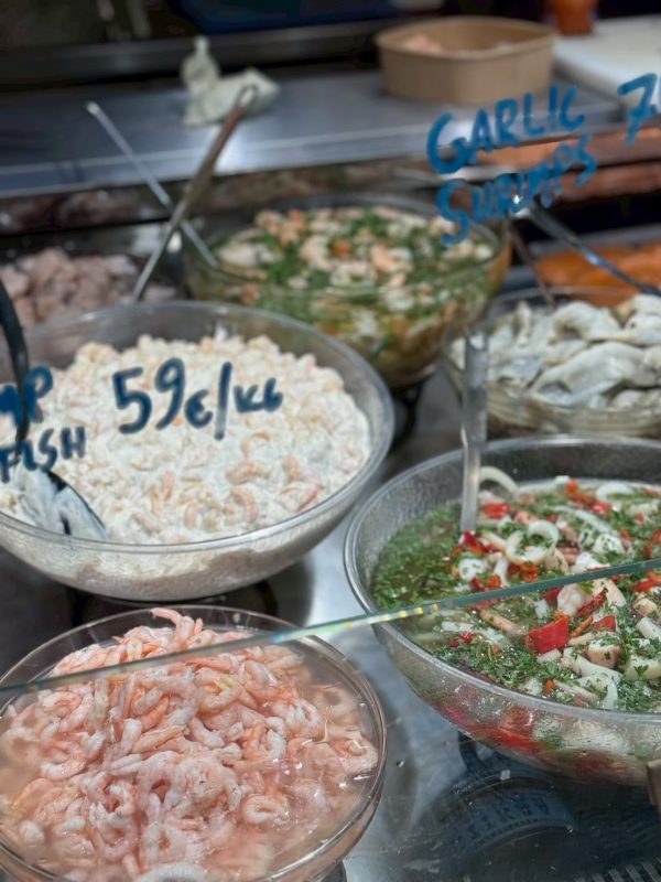 ショーケースには新鮮なサーモンやベリーが宝石みたいに並んでいます。