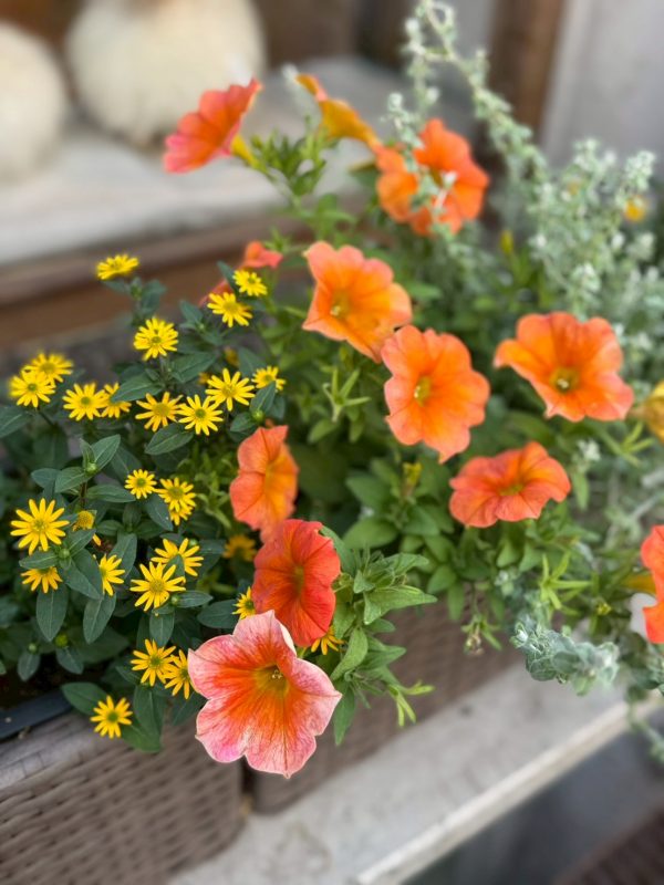 食事をしながらふと窓の外を見ると、石畳の道を歩く人たちや、古い建物の窓辺に飾られた花が見えます。