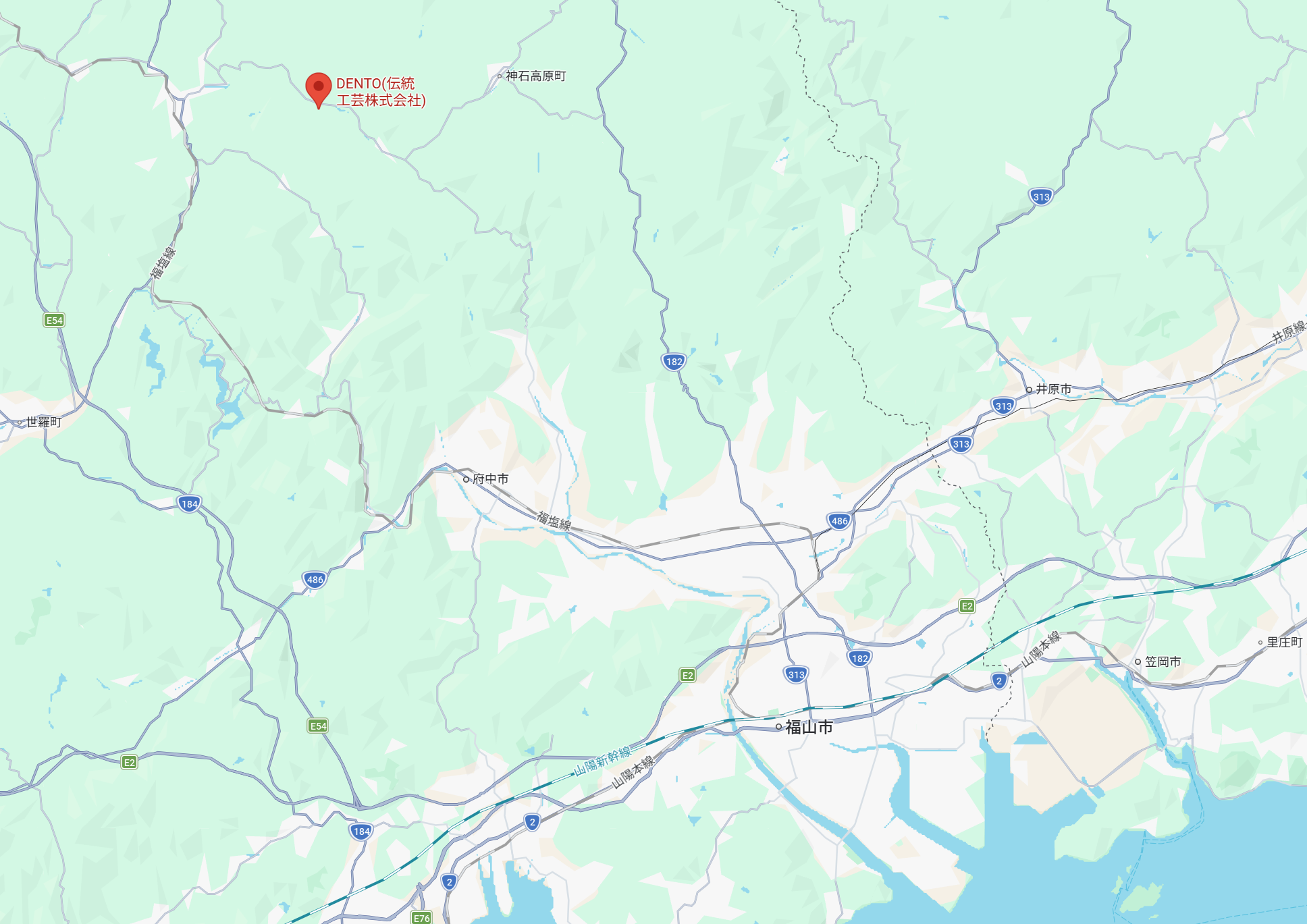 - 山陽自動車道から(福山・岡山・四国方面より):「福山東IC」より国道182号線を北上し、約60分。